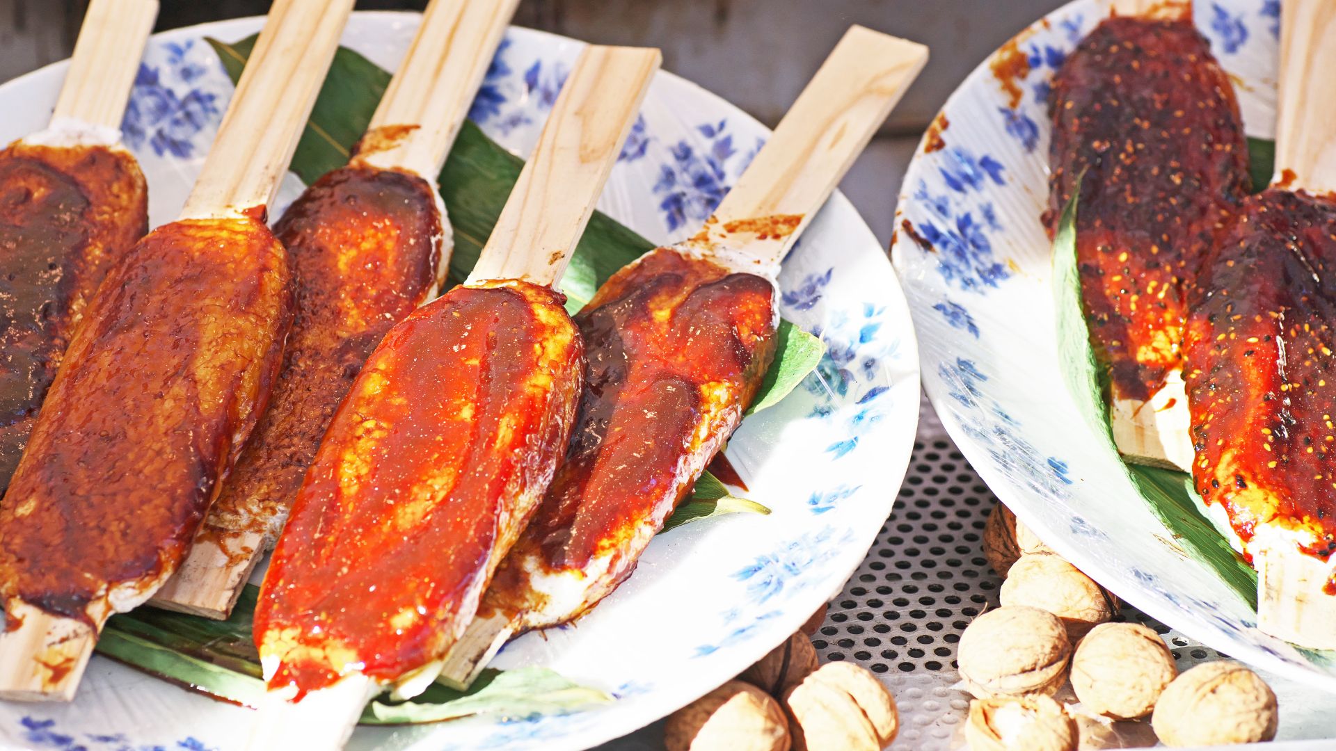 それを串や細長い板につけて乾燥させたり焼いたりする。